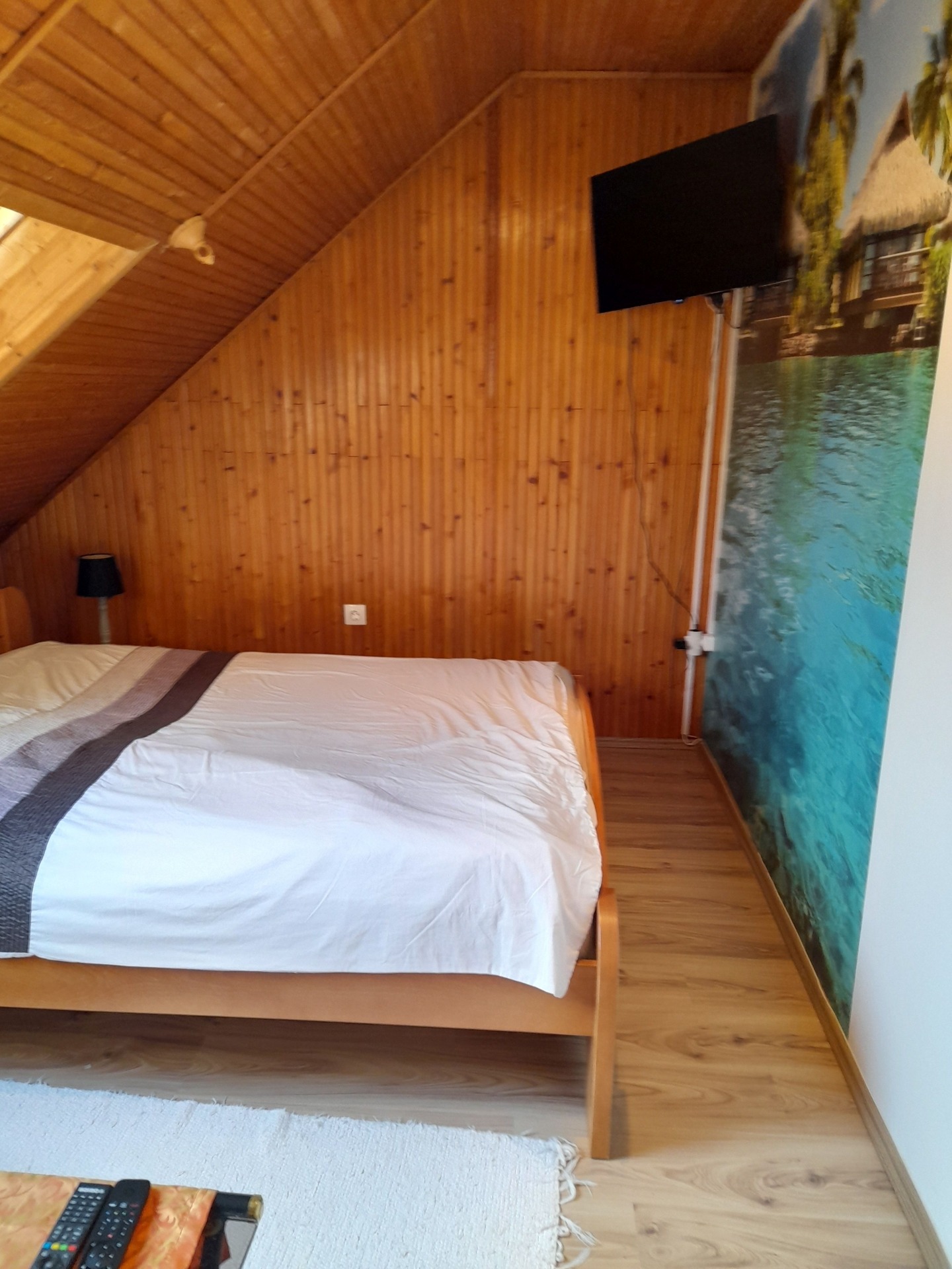 Zala megye, Nagykanizsa, összességében 140m2-es erkélyes lakás eladó. A dél-zalai település északi városrészén található, második emeleti, beépített tetőtérrel rendelkező ingatlan fogadó szintjén 3 hálószoba (melyekből az egyik erkélyes), egy dolgozószoba, gardrób, nappali, közlekedő, konyha, kamra, tároló, fürdőszoba és illemhelyiség, míg a tetőtérben szoba, konyha, közlekedő és fürdőszoba került kialakításra. A nyolcvanas évek elején épült társasház földszintjén a lakáshoz külön tároló is tartozik. A lakás melegéről gázkazán gondoskodik, radiátoros hőleadókkal. Az ingatlan felújítása, korszerűsítése (vezetékek, kazán, burkolatok stb cseréje) az elmúlt évben megtörtént. A kulturált lakóközösséggel rendelkező társasház zárt udvarán az ingatlanhoz gépjármű beálló is tartozik.
